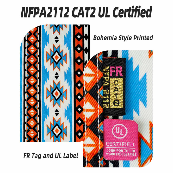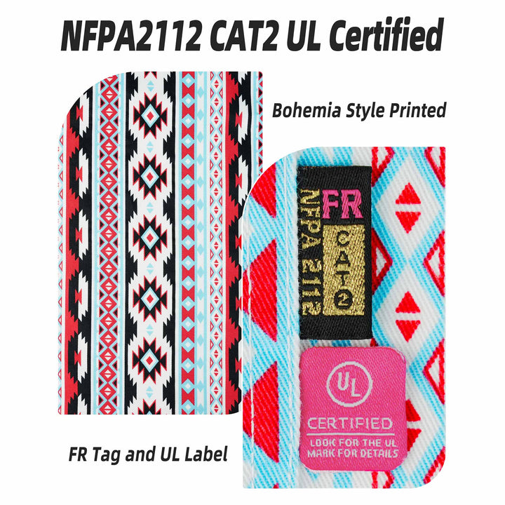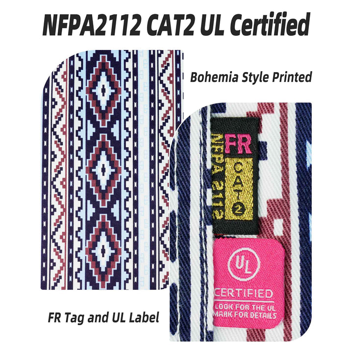 - FR MATERIALS: 6.5oz printed Bohemia 100% cotton twill flame-resistant treated, FR buttons, aramid threads!Clearly FR tag and UL certified label on the pocket.