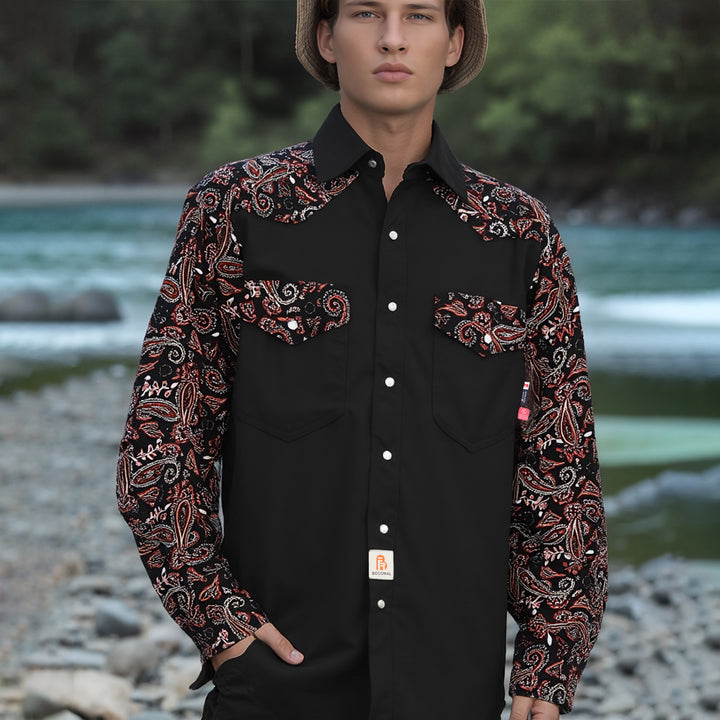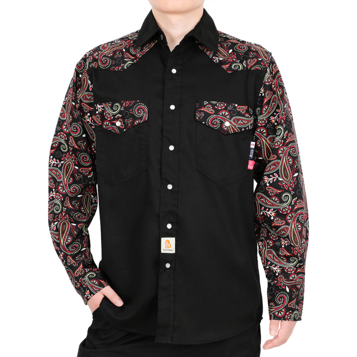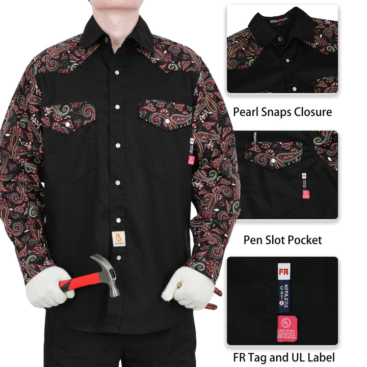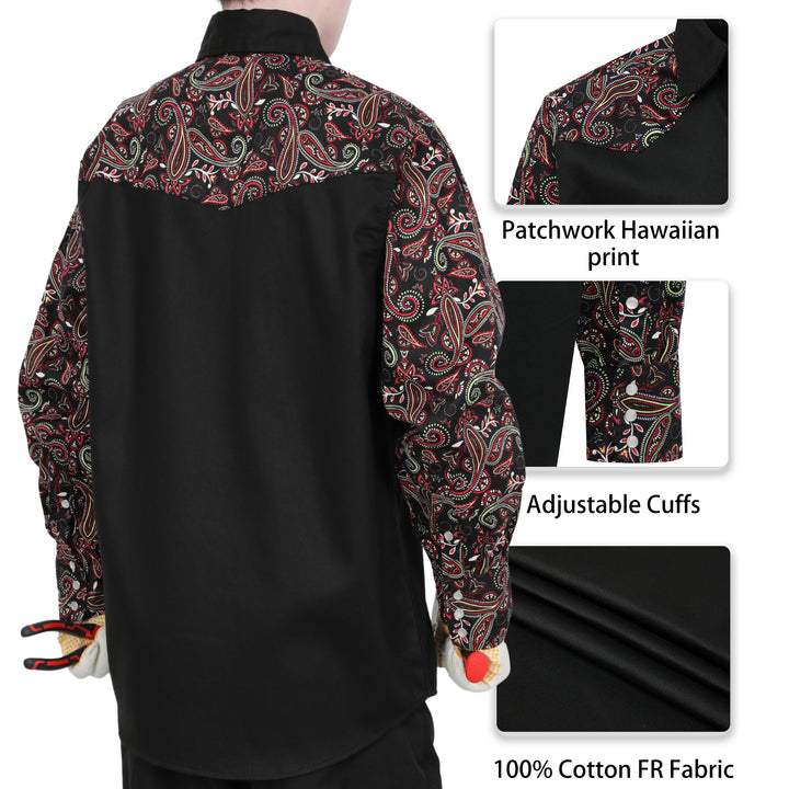 6.5oz Pearl Snaps Two Tone Paisley/Hawaii Flame Resistant Cotton Welding Shirt NFPA 2112 CAT 2