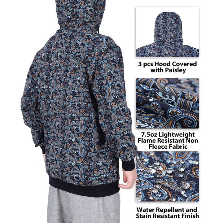 7.5oz Lightweight Paisley Printed Flame Resistant Hooded Sweatshirts Non Fleece -2613P