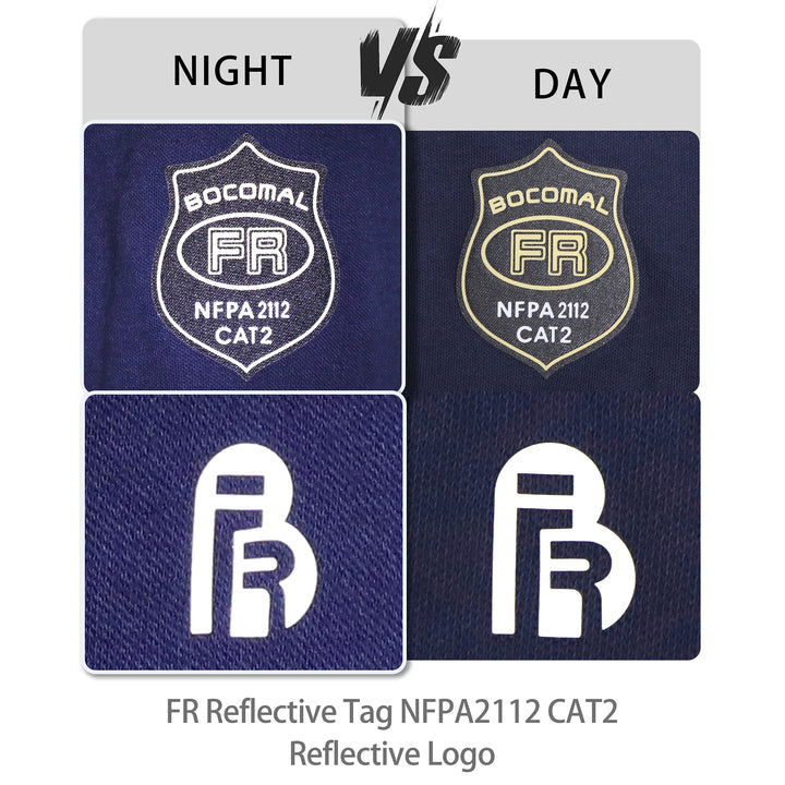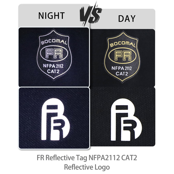- ENGINEERED FOR SAFETY: A flame-resistant certified tag on the left sleeve, the front chest displays the BOCOMAL logo. This garment meets or exceeds the standards for HRC2, Arc Rating ATPV 11.6 Calories/cm2, and the requirements of NFPA2112 standard on flame-resistant garments for protection of industrial personnel against flash fire,2012 edition, also NFPA70E ASTM F1506, and CAT II certified!