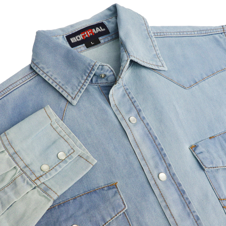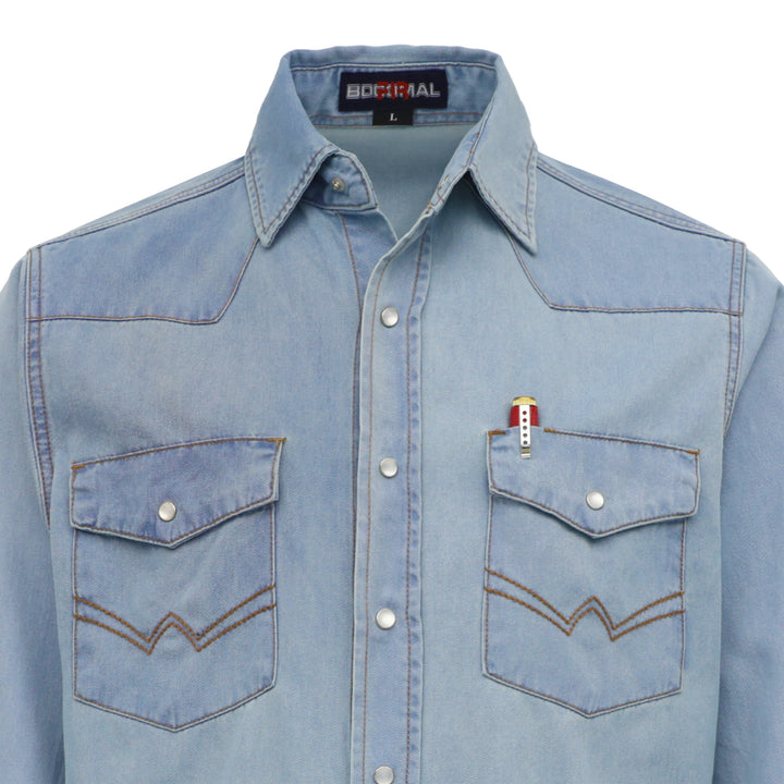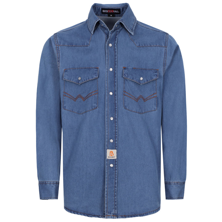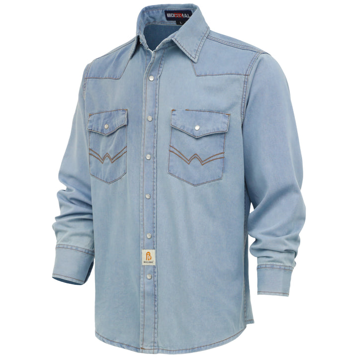 6.5OZ Work Shirts Vintage Washed Lightweight Soft Denim Pearl Snap Down-Relaxed Fit (Non FR)