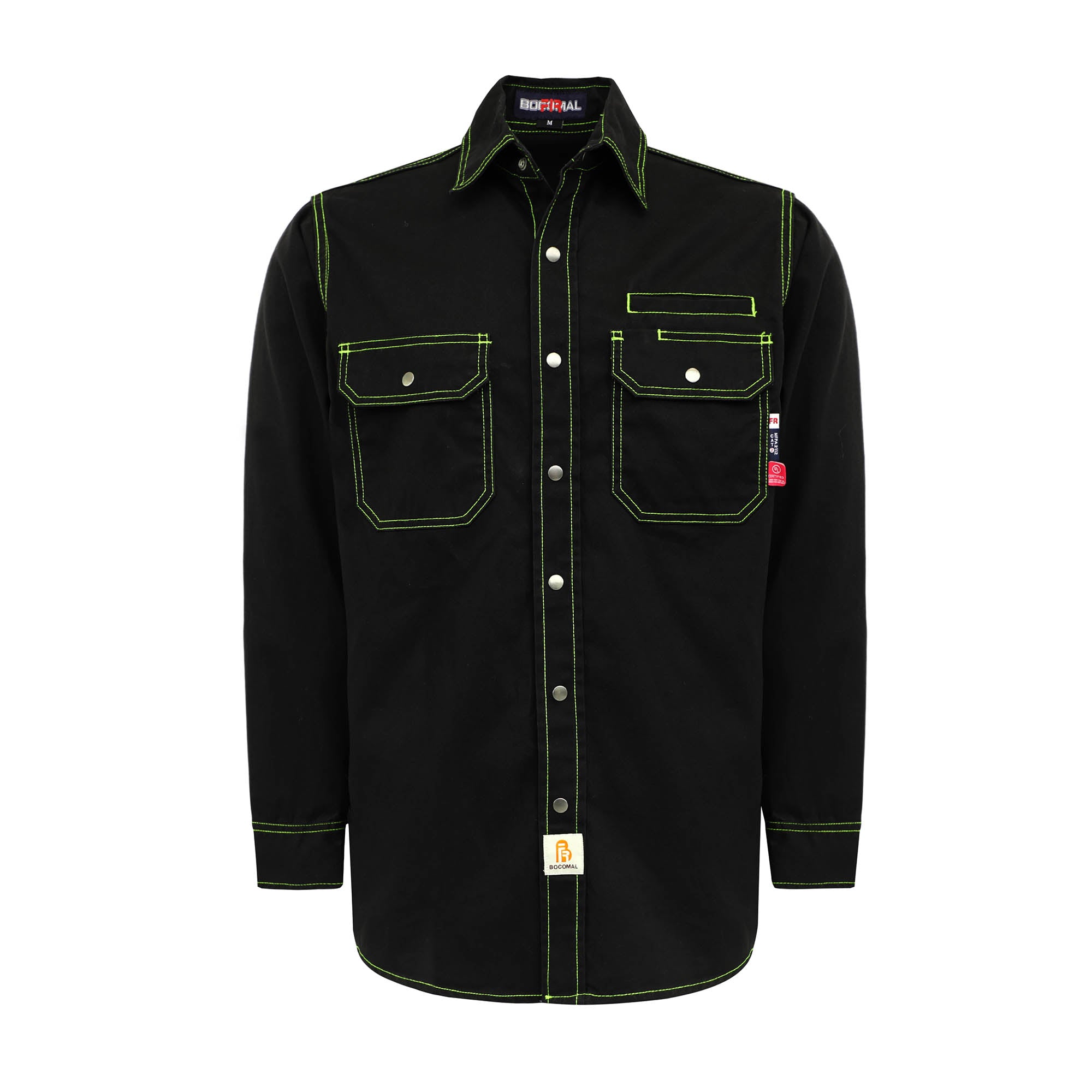 - FR MATERIALS:7.5 oz 100% cotton twill soften brushed.Flame resistant treated,water repellent and stain resistant Finish.FR aramid threads,Eye-catch FR Tag/UL tag on chest pocket.
