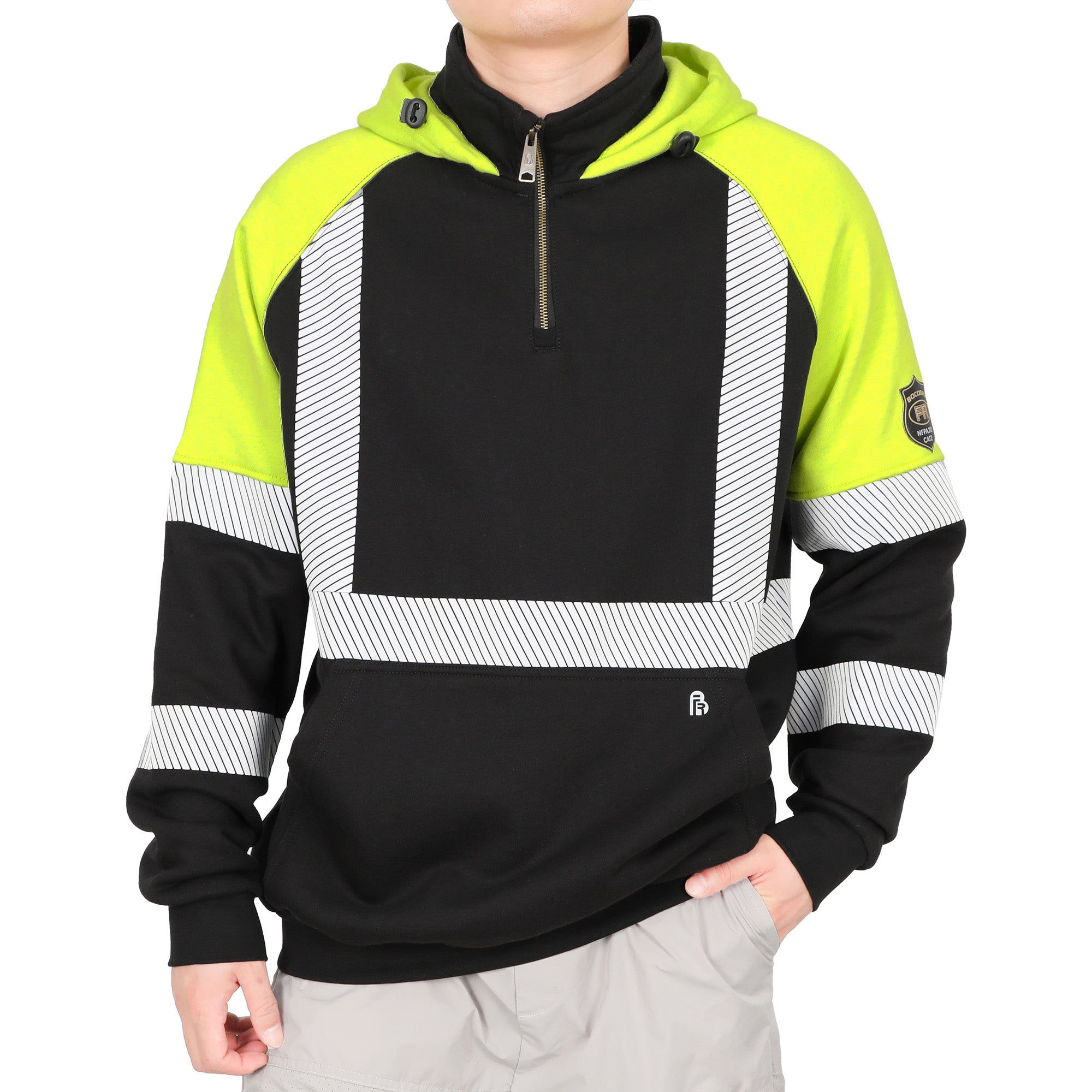 - SAFETY CERTIFICATION: FR reflective tag on the left sleeve, this pullover hoodie is built to provide reliable protection in hazardous work environments. Crafted from UL-certified flame-resistant fabric, it complies with NFPA 2112 standards and meets or exceeds HRC2 requirements with an arc rating of ATPV 23 cal/cm².It also meets NFPA 70E and ASTM F1506 standards and is classified as CAT2, ensuring dependable safety against flash fire and arc flash risks.