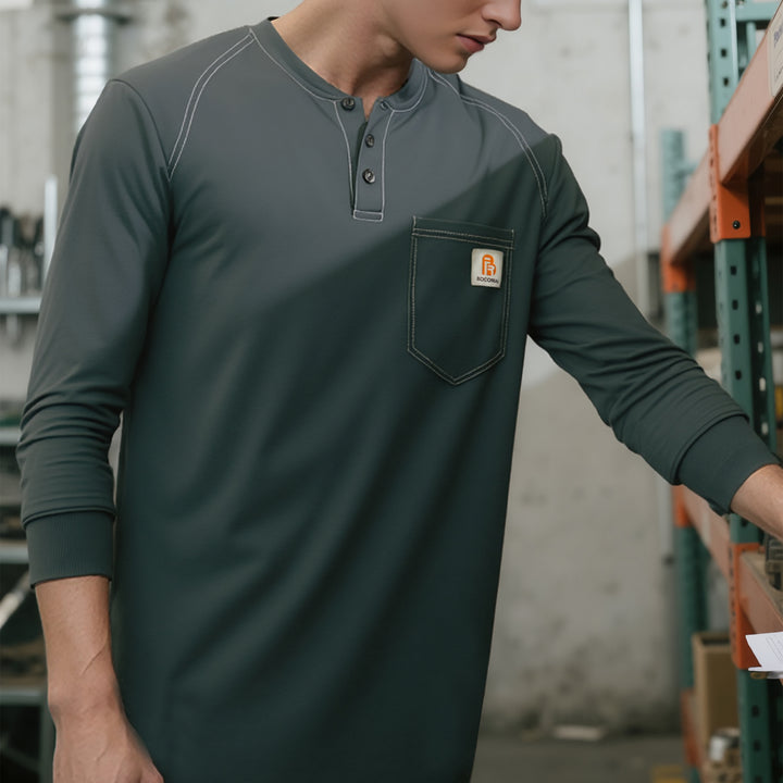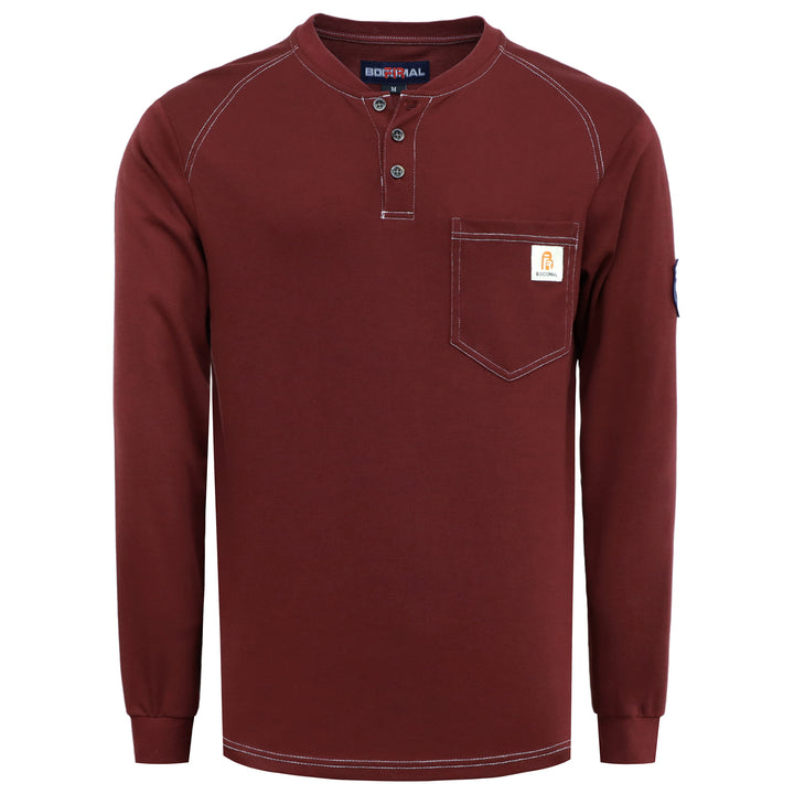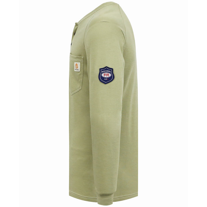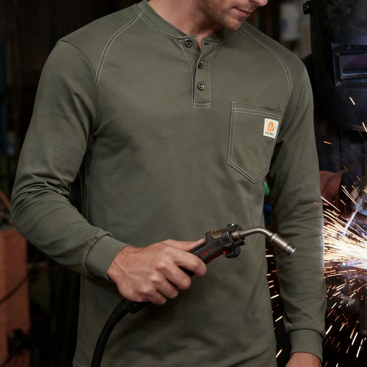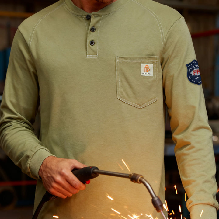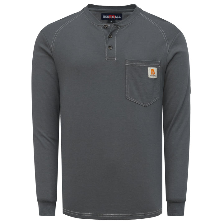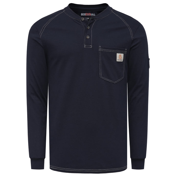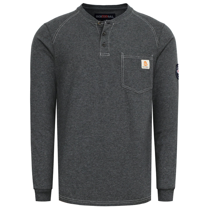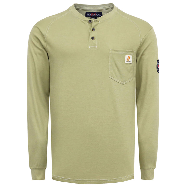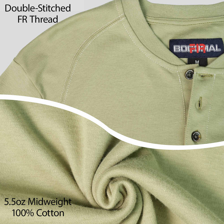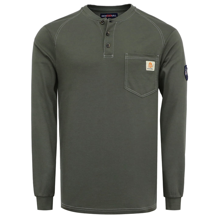 5.5oz Cotton Long Sleeve Henley Shirt Flame Resistant -9108