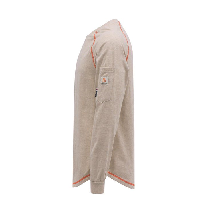 FR MATERIALS:Heather series 6 oz 100% cotton jersey knit mid-weight smooth fit.Flame resistant treated,FR aramid threads. Eye-catch FR Tag on sleeve pocket,UL tag on inseam.FASHION AND COMFIT:This FR work shirt provides a perfect and comfortable fit,Soft and fashionable.we have pre-washed and preshrunk the shirt to prevent any shrinking or distortion after washing. It is also wrinkle-free, making it easy to maintain.