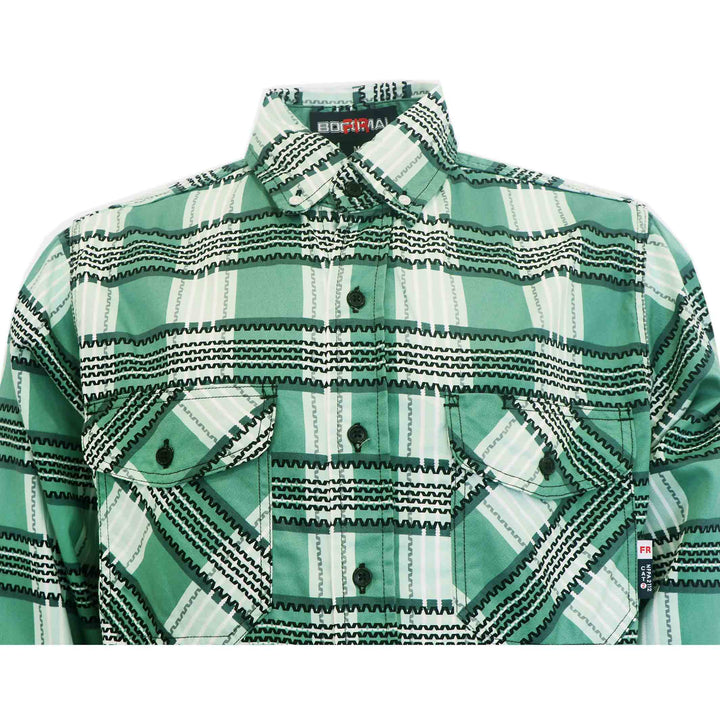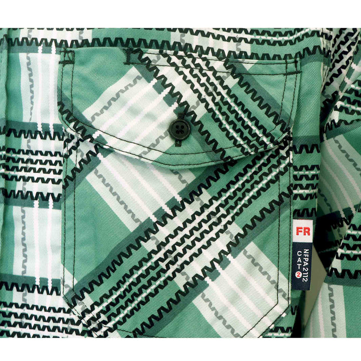 • FR MATERIALS:6.5 OZ Printed Plaid Cotton Twill FR Treated,FR Buttons,FR Sewing Threads!Clear FR Tag on arms and bottom front.More FR info On Tag About UL Certification.